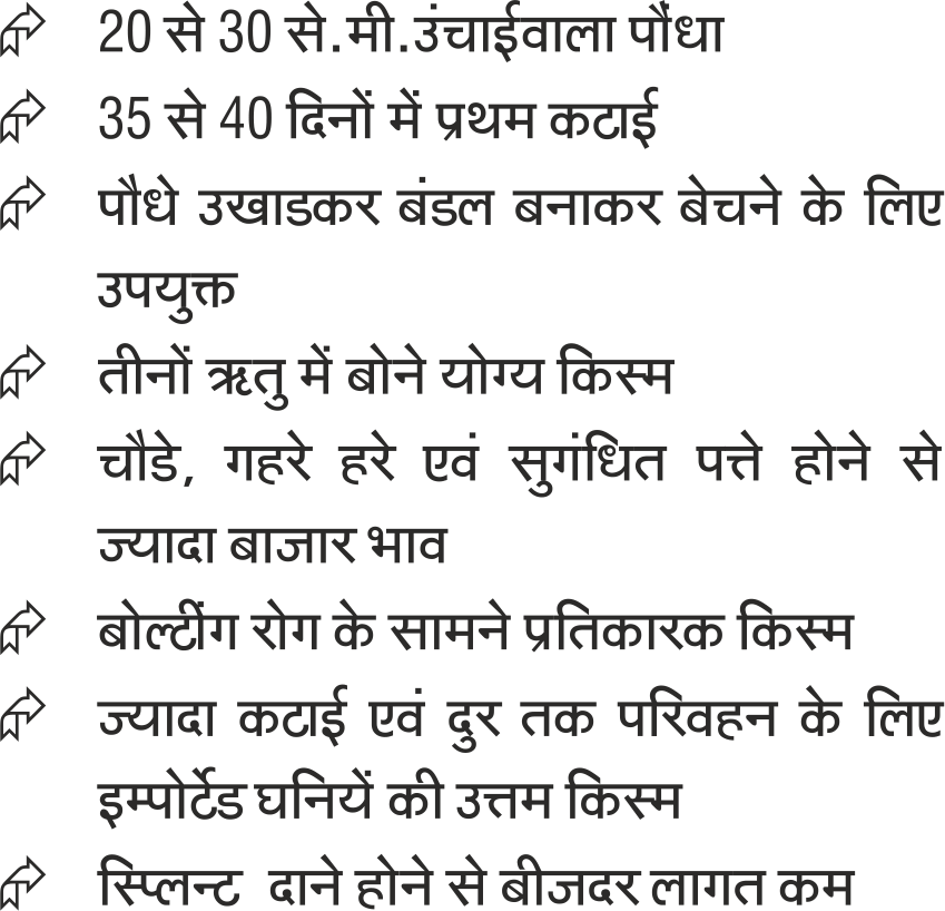 Imported coriander variety with long stay fresh character